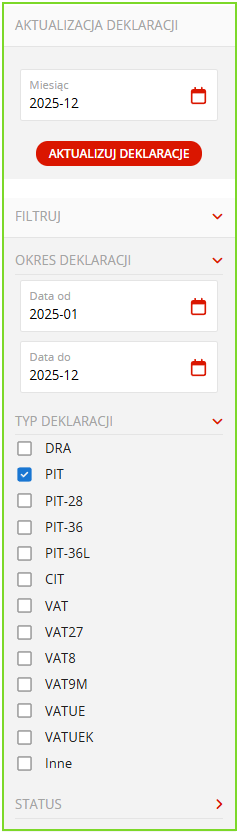 - Okres deklaracji: od 2025-01 do 2025-12;