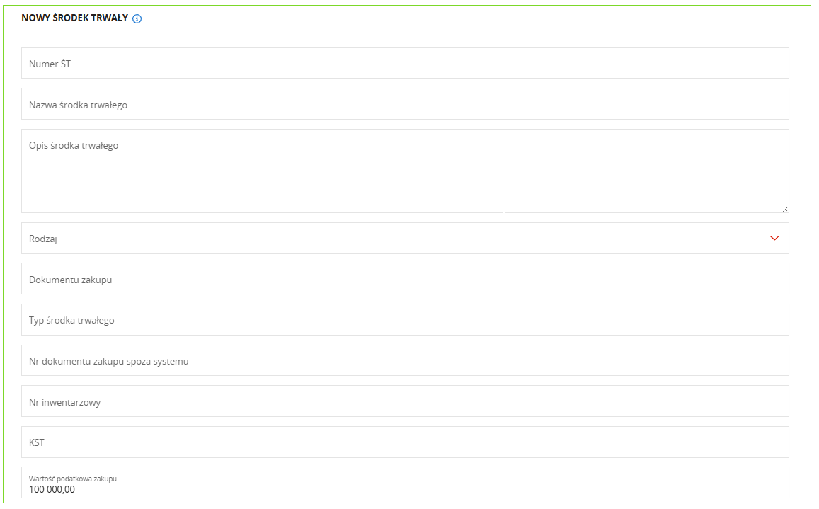 W systemie pole emisji CO2 ma domyślnie ustawioną wartość na 50, w związku z czym dla już istniejących pojazdów wprowadzonych do systemu, wartość limitu podczas księgowania faktur kosztowych dla kategorii Leasing oper. sam. zostanie automatycznie przeliczona według kwoty nowego limitu 100 000 zł - dla faktur księgowanych z datą wystawienia od 01.01.2026r.