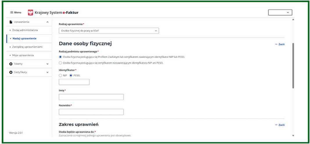 - Osobie fizycznej do pracy w KSeF