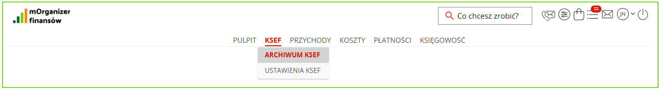 Zakładka dostępna jest jako podzakładka: KSeF/Archiwum KSeF. Zakładka dostępna jest dla wszystkich użytkowników systemu, niezależnie od posiadanego pakietu.